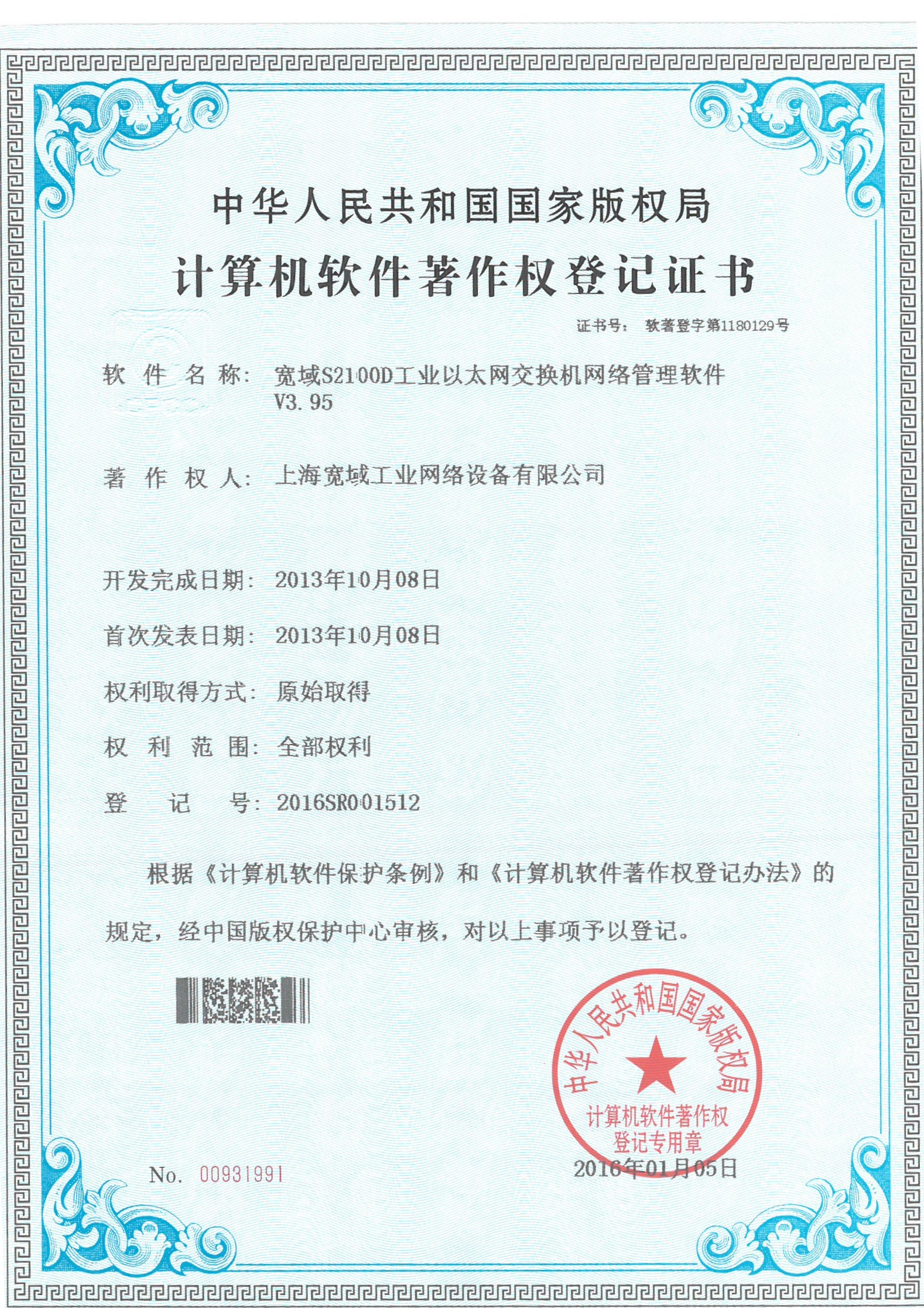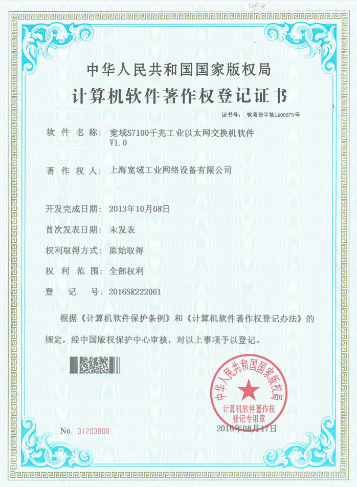S7100千兆工業以太網交換機V1.0軟著證書