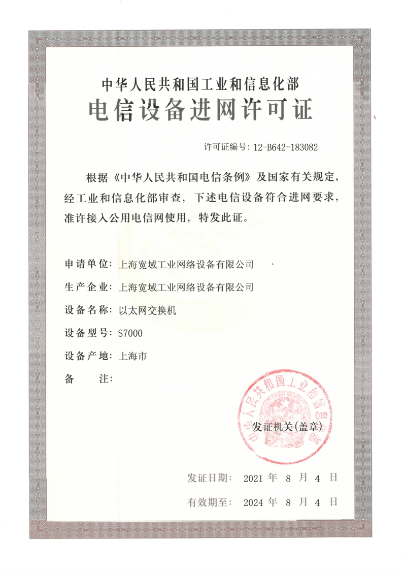 上海寬域S7000工信部進網許可