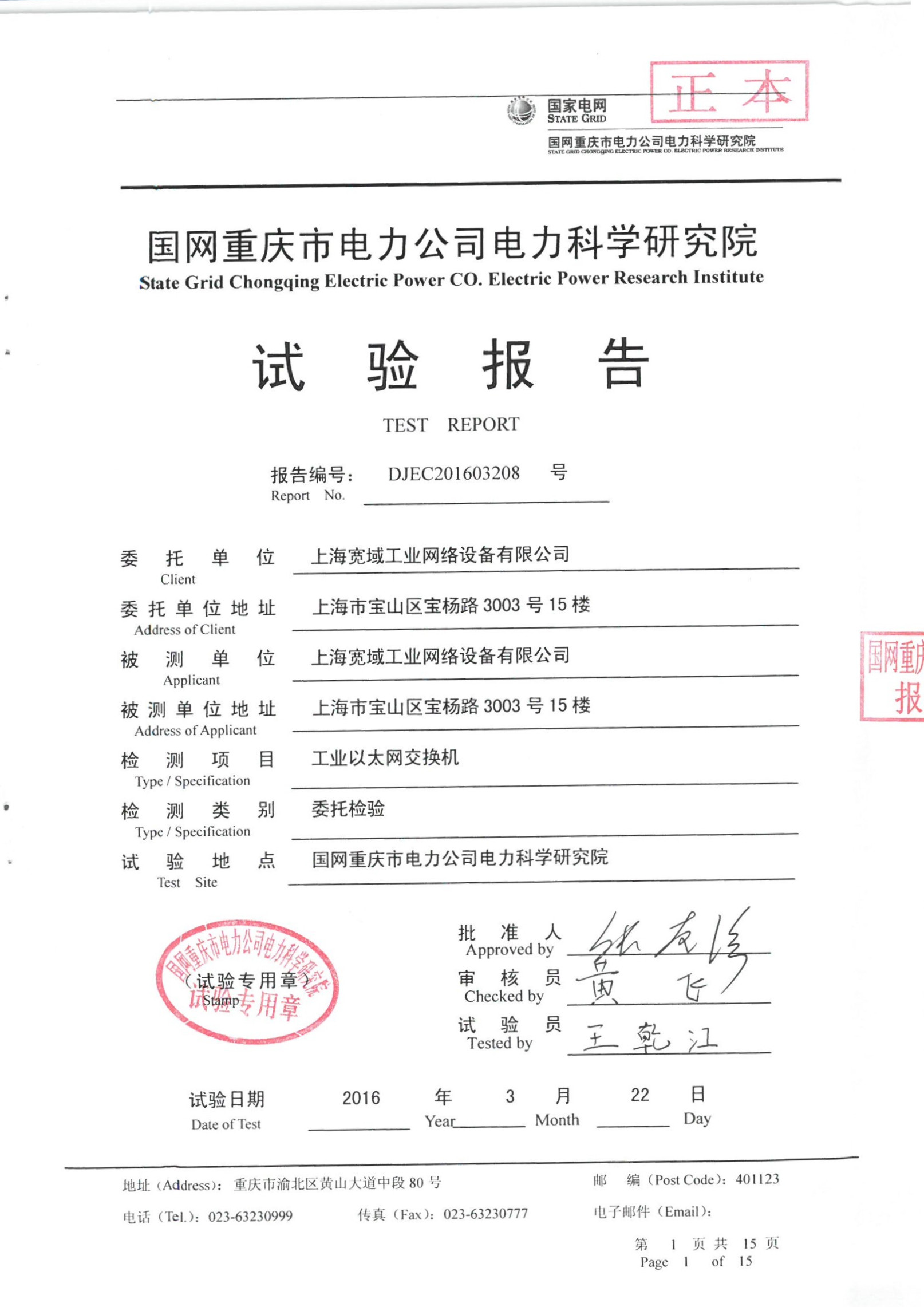 重慶電科院交換機檢驗報告