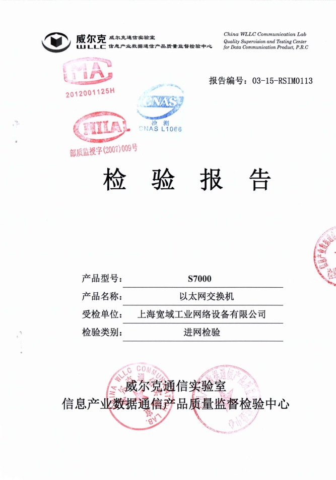 S7000工業以太網交換機檢驗報告