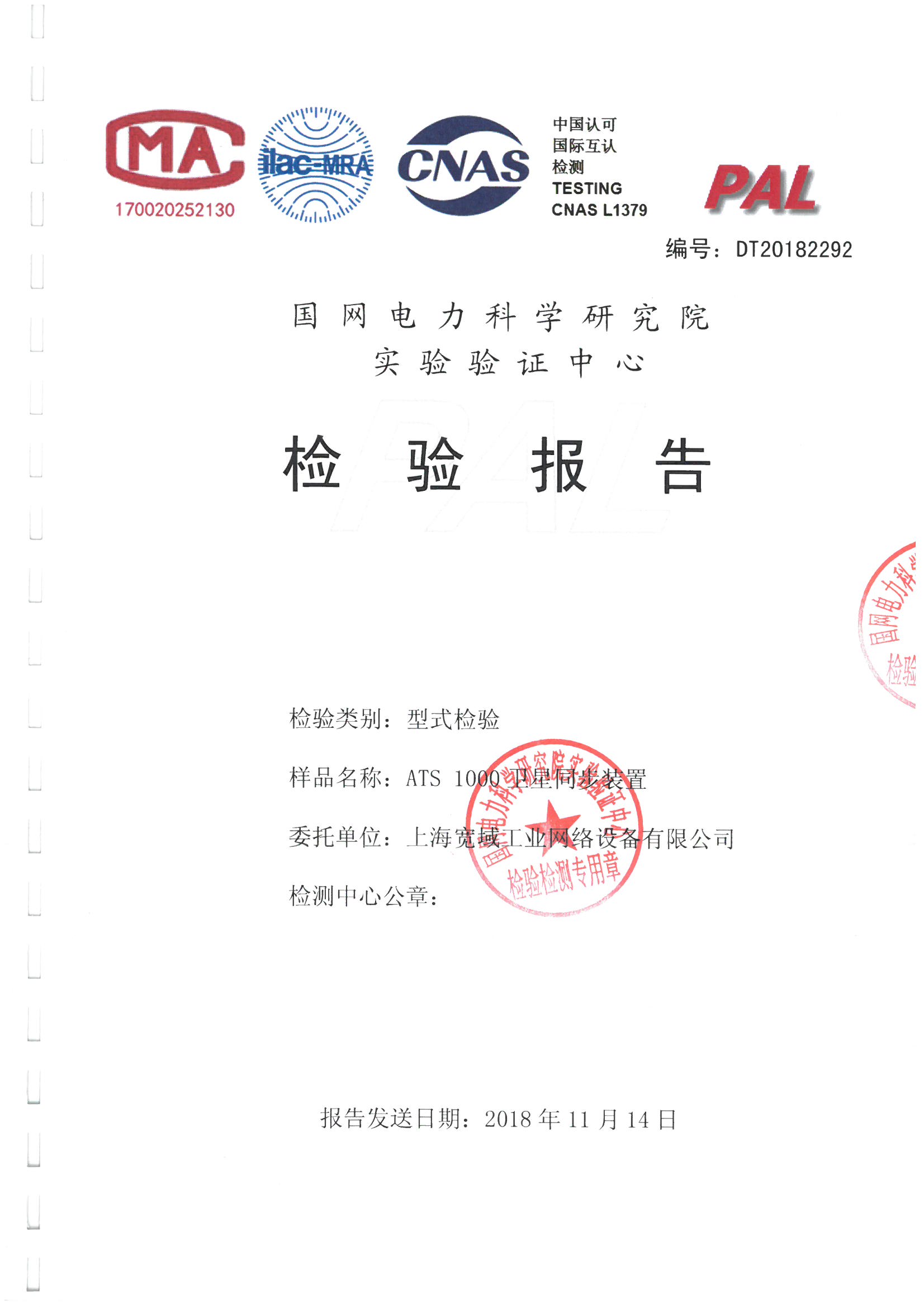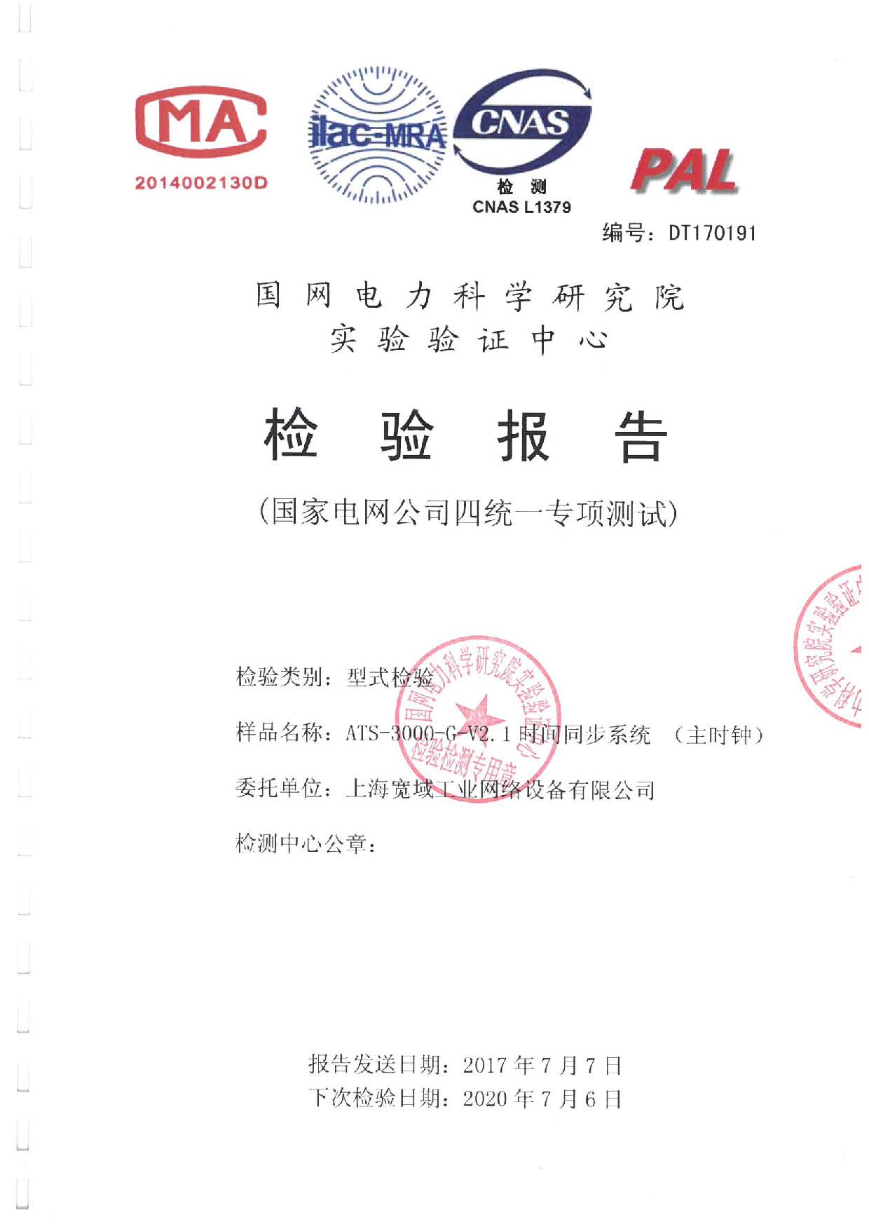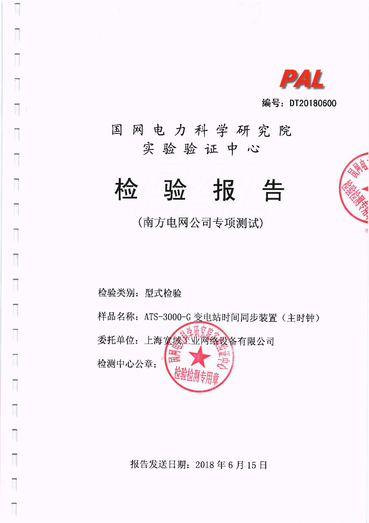 ATS-3000-GU變電站時間同步裝置(主時鐘)檢驗報告