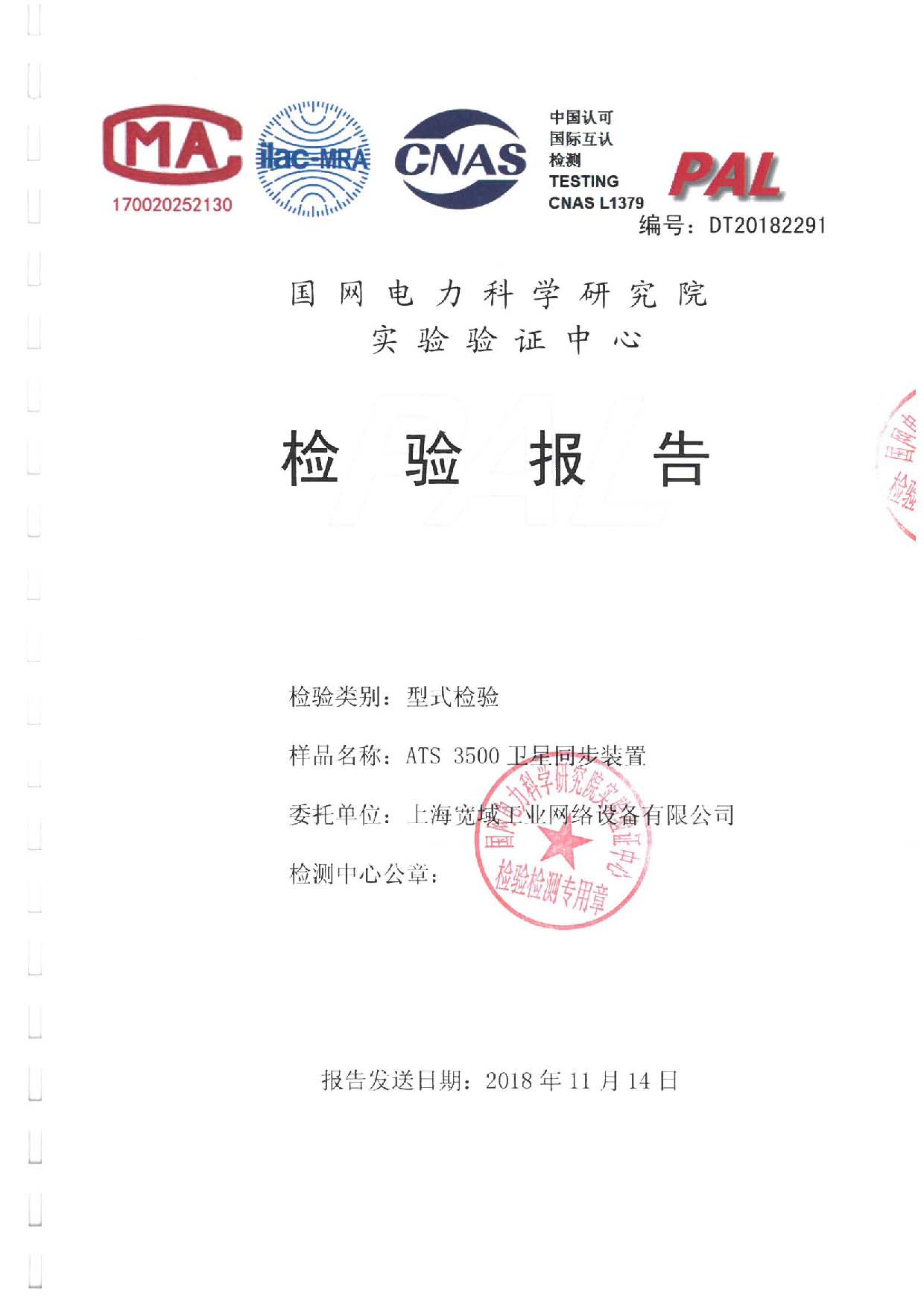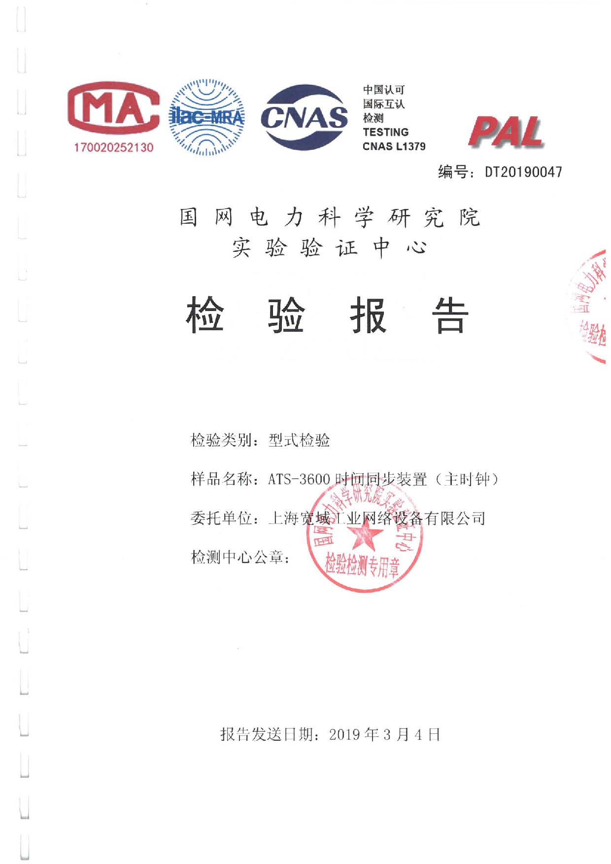 ATS-3600時間同步裝置(主時鐘)檢驗報告