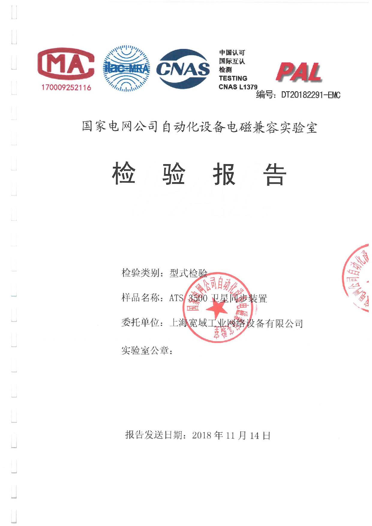 ATS3500衛星同步裝置檢驗報告EMC