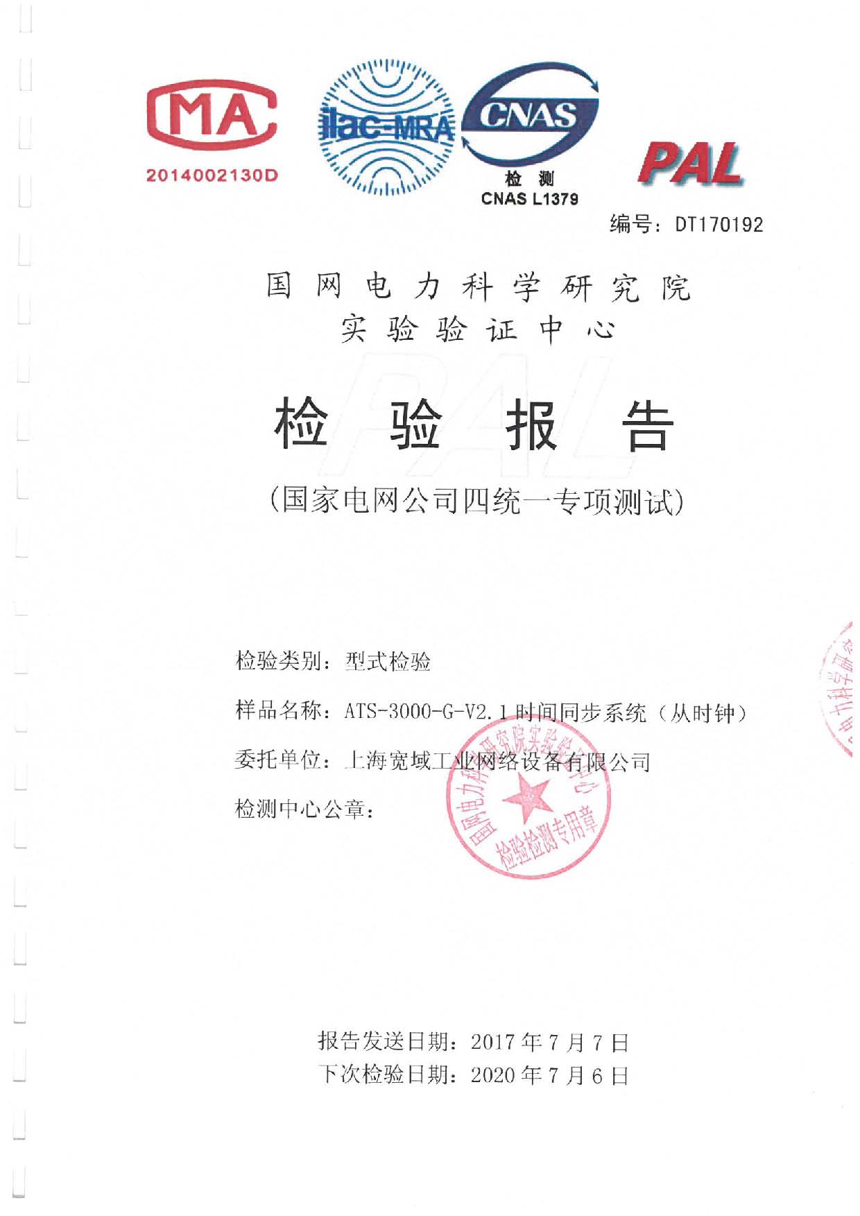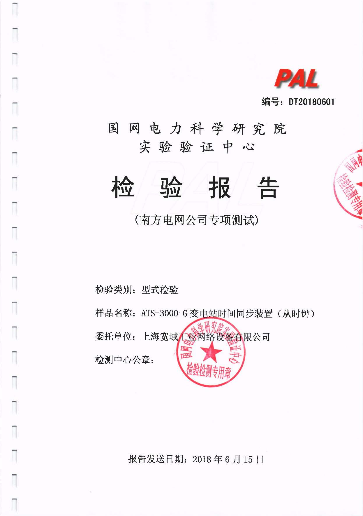 ATS-3000-GU變電站時間同步裝置(從時鐘)檢驗報告