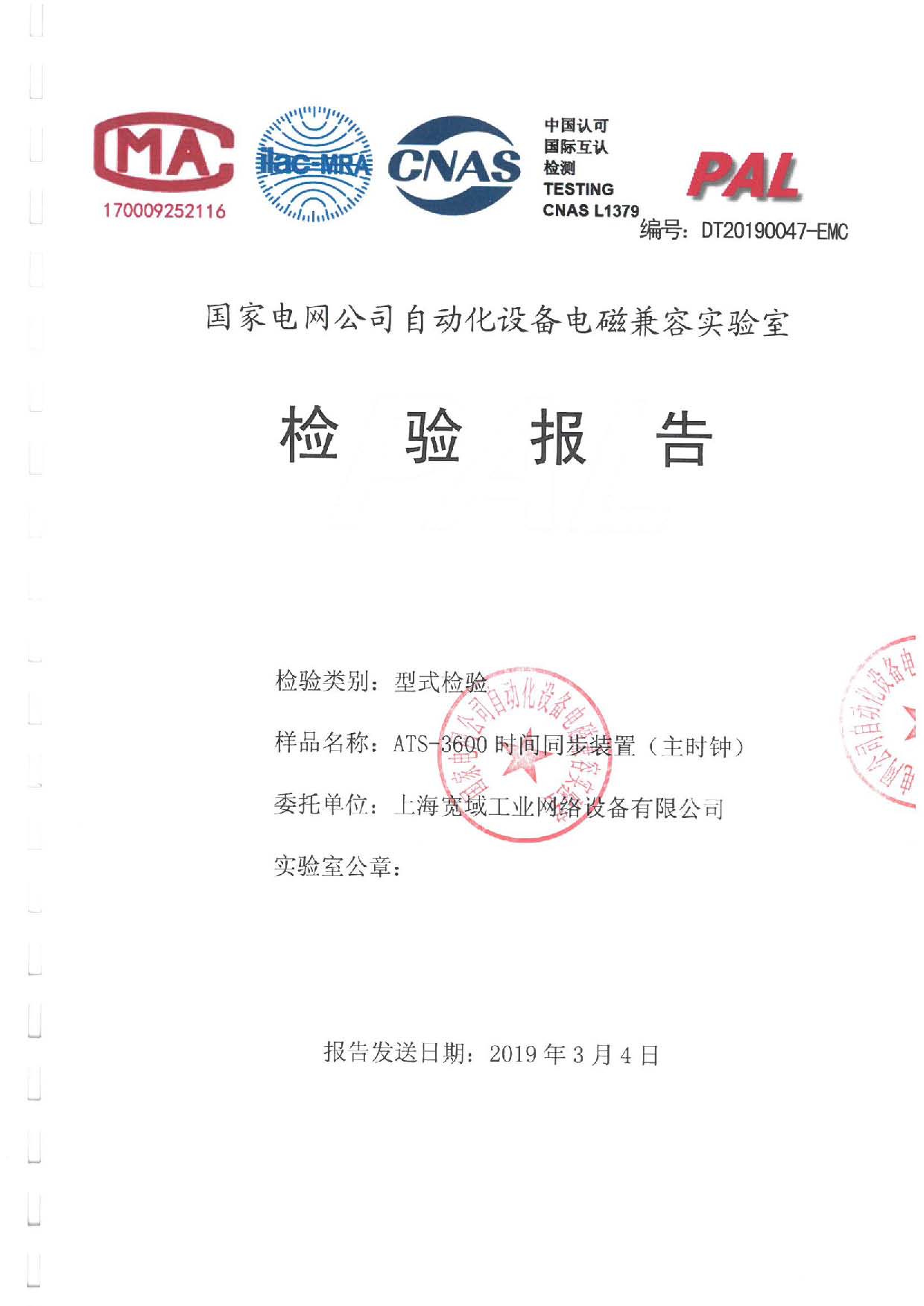 ATS-3600時間同步裝置(主時鐘)EMC檢驗報告