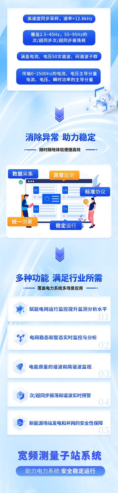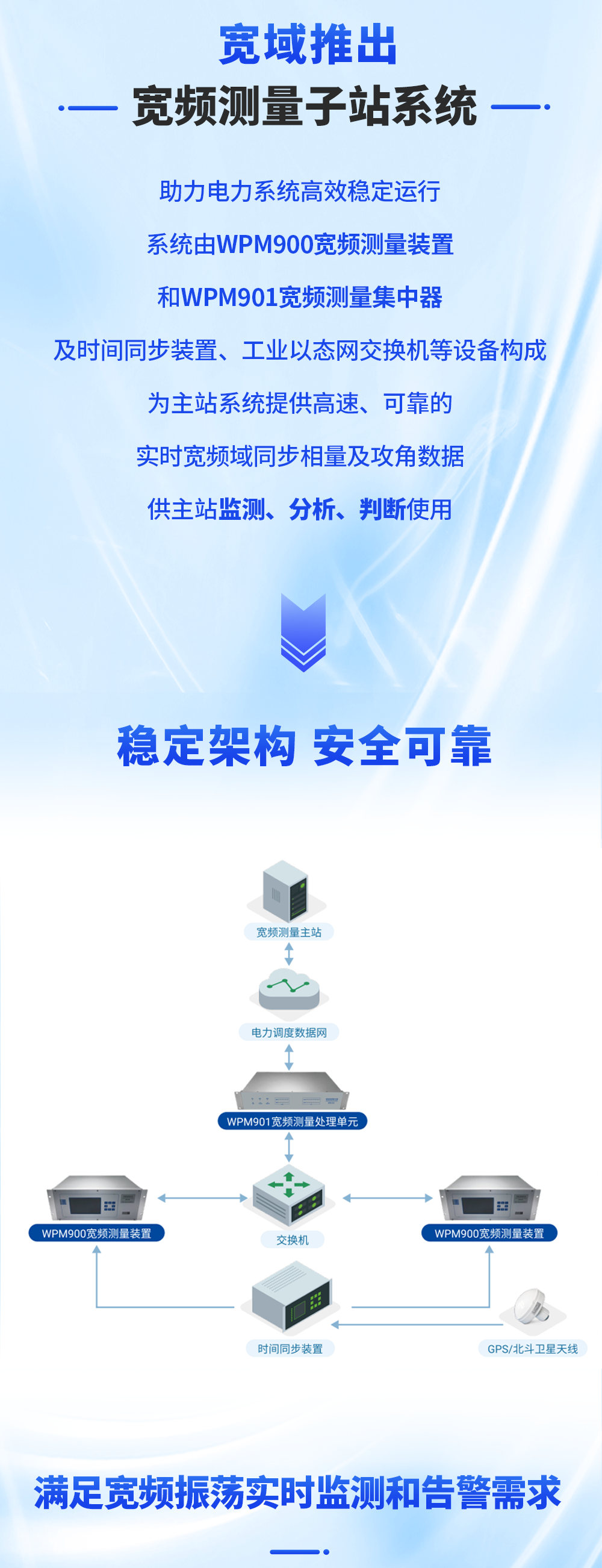 WPM901寬頻數(shù)據(jù)集中器/寬頻測量處理單元(以下簡稱產(chǎn)品)依據(jù)國網(wǎng)《QGDW 12214-2022 電力系統(tǒng)寬頻測量裝置技術(shù)規(guī)范.pdf》、南網(wǎng)《南方電網(wǎng)寬頻測量裝置技術(shù)規(guī)范》設(shè)計,產(chǎn)品的硬件結(jié)構(gòu)、技術(shù)指標(biāo)、應(yīng)用功能等均按照標(biāo)準(zhǔn)的要求統(tǒng)一規(guī)范并實施。產(chǎn)品采用19英寸2U標(biāo)準(zhǔn)機(jī)箱,后接線結(jié)構(gòu),產(chǎn)品用于接收、存儲和轉(zhuǎn)發(fā)寬頻測量裝置/寬頻測量單元數(shù)據(jù),同時具有數(shù)據(jù)的分析和預(yù)處理功能,實現(xiàn)原始測量數(shù)據(jù)、預(yù)處理分析數(shù)據(jù)和診斷分析結(jié)果數(shù)據(jù)向主站的定制傳輸。