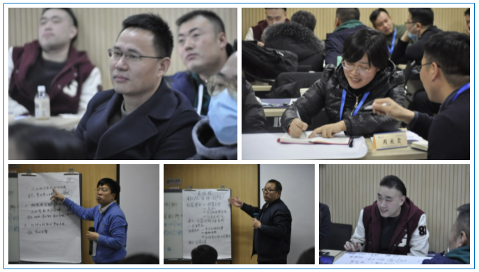在培訓課上,周穎教授以生動切實的案例及各項銷售數據進行講解分析, 從市場定位、營銷框架、營銷創新三大要點梳理營銷管理與創新的關鍵點,楊寶林教授以執行意識、執行商、團隊溝通協作等方面為切入點點出打造高效執行力的方法,呂春蘭老師在培訓中以“談判”為主題的破冰討論,仿真談判等形式引出銷售談判策略與技巧,各小組成員積極交流心得,分享各自團隊的實戰經驗與所得。