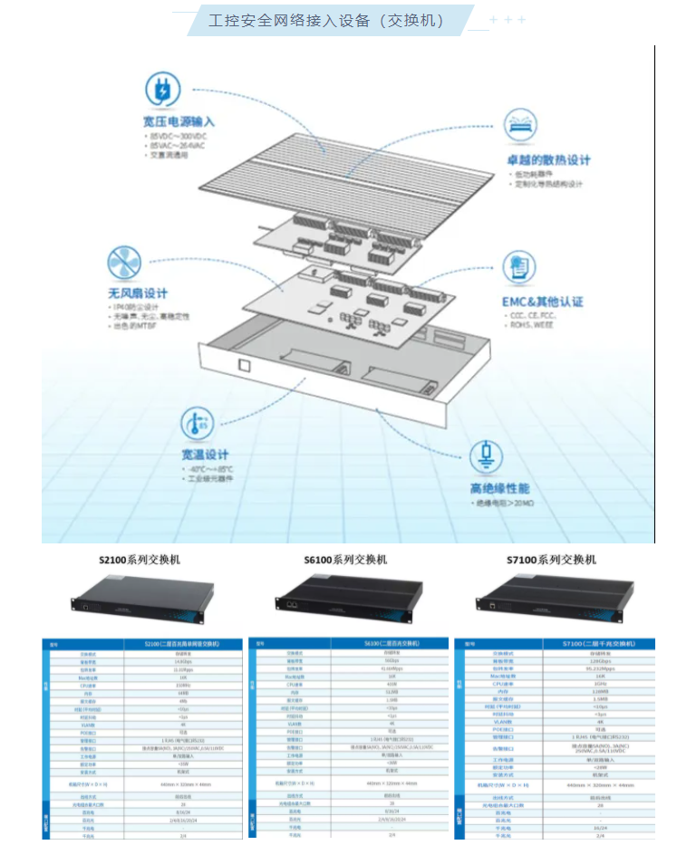 S7100D安全可控系列是上海寬域工業(yè)網(wǎng)絡(luò)設(shè)備有限公司自主研發(fā)的新一代安全可控的國產(chǎn)化網(wǎng)管型全千兆卡軌式工業(yè)交換機。該系列交換機采用高性能的工業(yè)級別芯片和優(yōu)秀的工業(yè)設(shè)計,可在所有端口滿負載運行下保持線速轉(zhuǎn)發(fā),產(chǎn)品的設(shè)計制造充分考慮了工業(yè)應(yīng)用環(huán)境中的各種惡劣條件和干擾因素,能滿足高低溫、過電壓、漏電及高壓沖擊等各種要求,并對嚴酷的電磁環(huán)境中的數(shù)據(jù)口防雷、快速脈沖群、浪涌、靜電等方面作了可靠性設(shè)計,可保證數(shù)據(jù)在嚴苛環(huán)境下可靠傳輸。本系列設(shè)備采用全金屬外殼設(shè)計,防護等級IP40。該系列產(chǎn)品適用于對安全可控要求較高的信息安全系統(tǒng)、工業(yè)控制系統(tǒng)、信息自動化等系統(tǒng)。